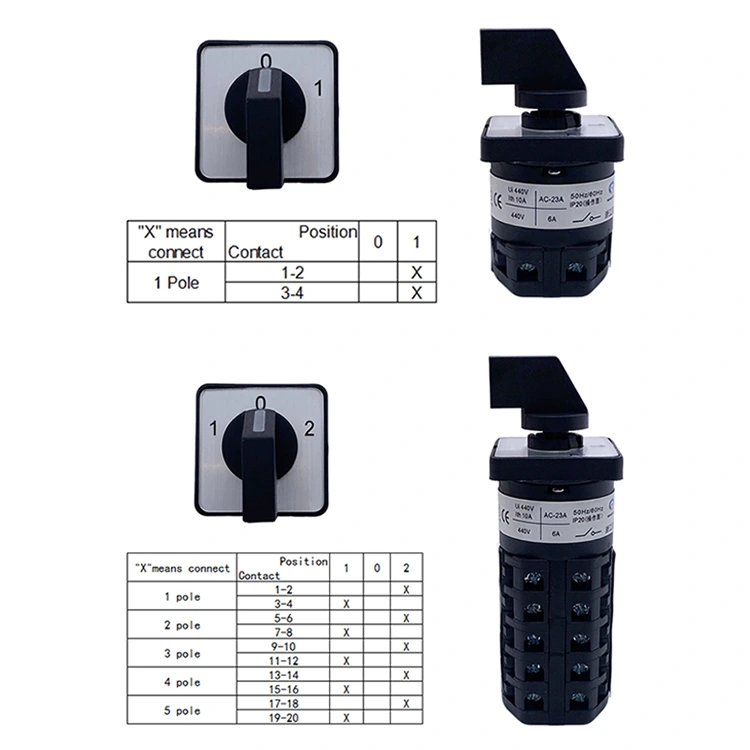 En términos de rendimiento central, el interruptor de leva de tres posiciones de 10 A funciona bien. Es adecuado para CA 50 HZ, voltaje de funcionamiento nominal de 690 V e inferior, voltaje de CC de 240 V e inferior y corriente especificada de 10 A. Puede abrir o romper manualmente el circuito con poca frecuencia para realizar funciones de control y conversión. También puede controlar directamente pequeños motores de CA. También se puede utilizar para control maestro y medición de circuitos. Se aplica a interruptores de control de circuitos, interruptores de equipos de prueba, interruptores de control eléctrico, interruptores de control de comando maestro y otros escenarios para garantizar el funcionamiento estable de diversos equipos eléctricos.