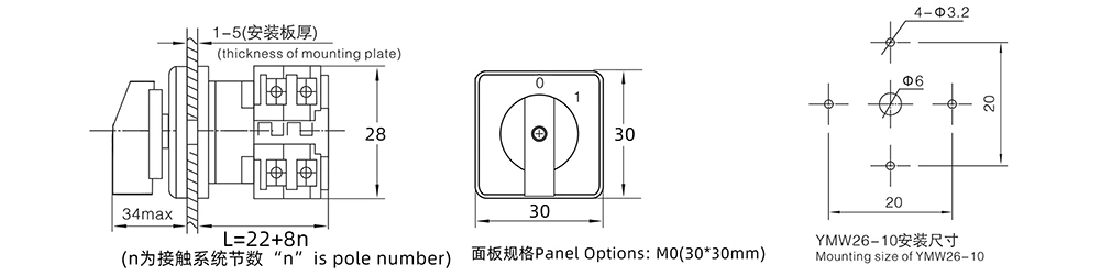 Como fabricante profesional en el campo de interruptores eléctricos durante más de 30 años, Zhejiang Yaming Electric Co., Ltd. ha lanzado el interruptor de leva de tres posiciones LW26 10A (modelo interno YMW26-10) con una artesanía exquisita y una tecnología excelente, que brinda soluciones eficientes y confiables para el control de circuitos eléctricos.