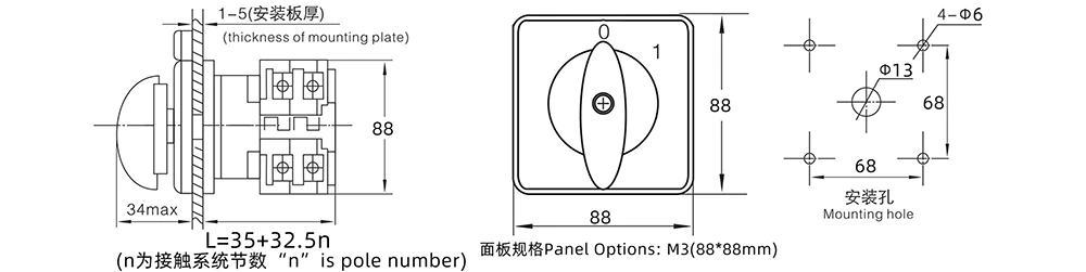 Para satisfacer diversas necesidades del mercado, el interruptor de cambio de leva giratorio YAMING 125A adopta un sistema de clasificación multidimensional: