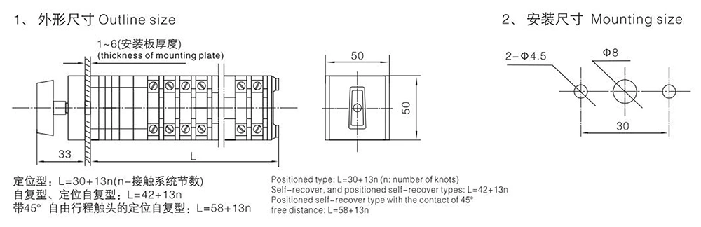 - Categoría de control maestro: el tipo de posicionamiento proporciona de 1 a 10 secciones de sistema de contacto para satisfacer las necesidades de circuitos de control principales complejos; el tipo de reinicio automático proporciona de 1 a 3 secciones de sistema de contacto, que es adecuado para escenarios de control principal simples.