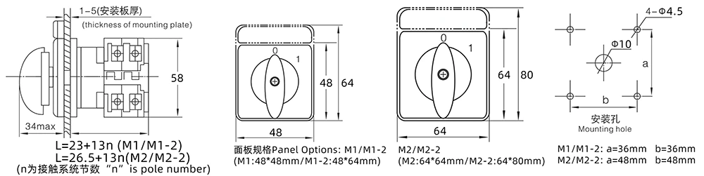 Además, el producto también puede proporcionar opciones de clasificación adicionales según el modo de operación y la ubicación del dispositivo de control, lo cual es ampliamente aplicable a interruptores de perilla de control de circuito, interruptores de equipos de prueba, interruptores de transferencia de control de motores y otros escenarios.