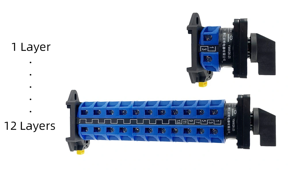 Para satisfacer las diversas necesidades de aplicaciones de los clientes globales, YAMING ha establecido un sistema de clasificación integral para el interruptor de leva montado en riel DIN de 25 A, que cubre múltiples dimensiones, como escenarios de aplicación, tipos de operación, recuentos de secciones, ángulos de conversión y formas de paneles. La clasificación específica es la siguiente: