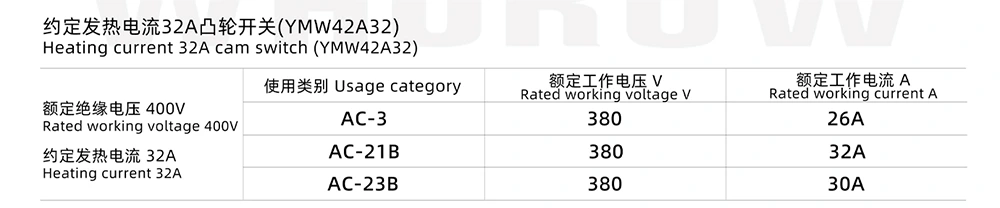 El interruptor de leva de montaje en carril DIN de tres posiciones YAMING 32A está diseñado con un rendimiento estructural excelente, con los siguientes parámetros clave: