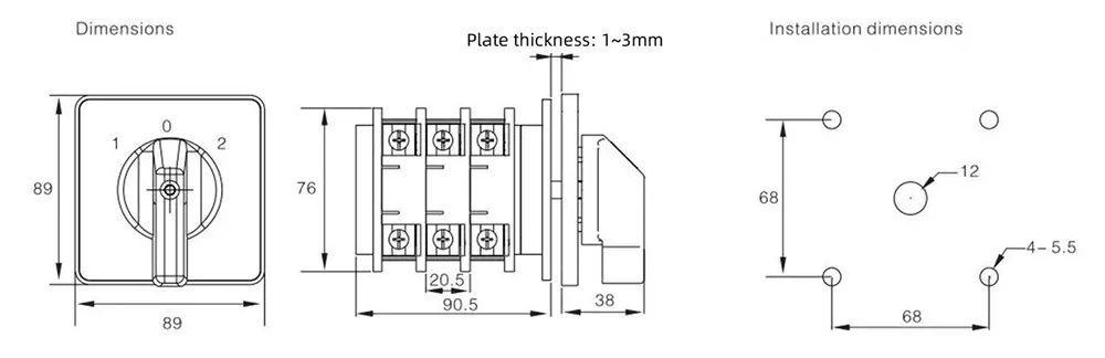 - Eficiente y confiable: Centrado en el control de circuitos eléctricos, el interruptor de cambio de control de potencia dual de tres posiciones 63A ofrece un funcionamiento eficiente y confiable, garantizando efectivamente la estabilidad del sistema eléctrico y cumpliendo con los requisitos de aplicaciones profesionales.