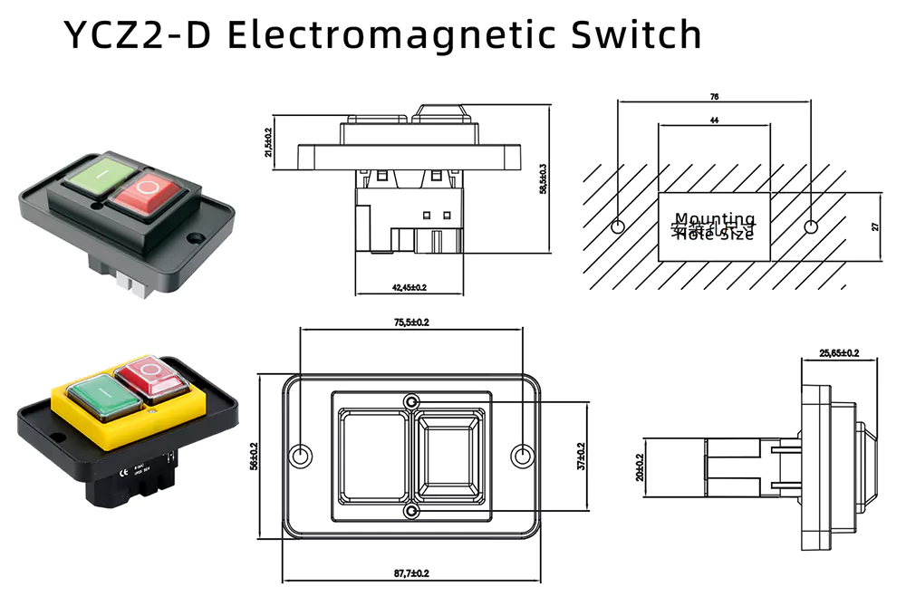 Con más de 30 años de profunda experiencia en la industria, Zhejiang Yaming Electric es un reputado fabricante de interruptores eléctricos de primera calidad de China, ampliamente reconocido a nivel mundial por su excelente confiabilidad. Nos especializamos en brindar soluciones profesionales personalizadas y productos eléctricos consistentemente estables y de alta calidad a clientes de todo el mundo. Nuestro interruptor electromagnético de botón pulsador amarillo de panel grande de 8 A (modelo interno: YCZ2-D) adopta tecnología de fabricación de vanguardia y se somete a una rigurosa inspección de calidad de todo el proceso. Presenta una vida útil prolongada, una corriente de trabajo nominal alta y un rendimiento de sellado superior. Equipado con terminales enchufables externos reservados, este interruptor se puede conectar perfectamente con componentes periféricos de seguridad, incluidos interruptores de protección contra sobrecargas, interruptores de límite, termostatos y sensores Hall para construir un circuito de protección de seguridad completo. Una vez que ocurre una falla mecánica, cortará instantáneamente el circuito de suministro de energía principal, eliminando efectivamente posibles accidentes de seguridad.